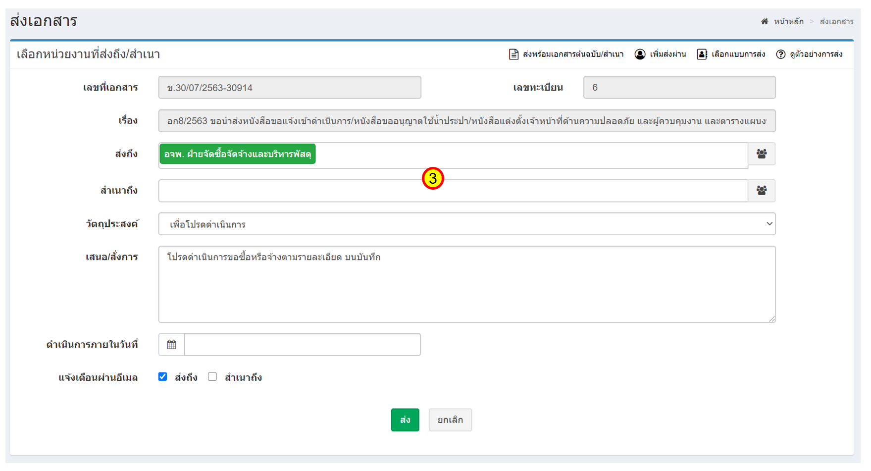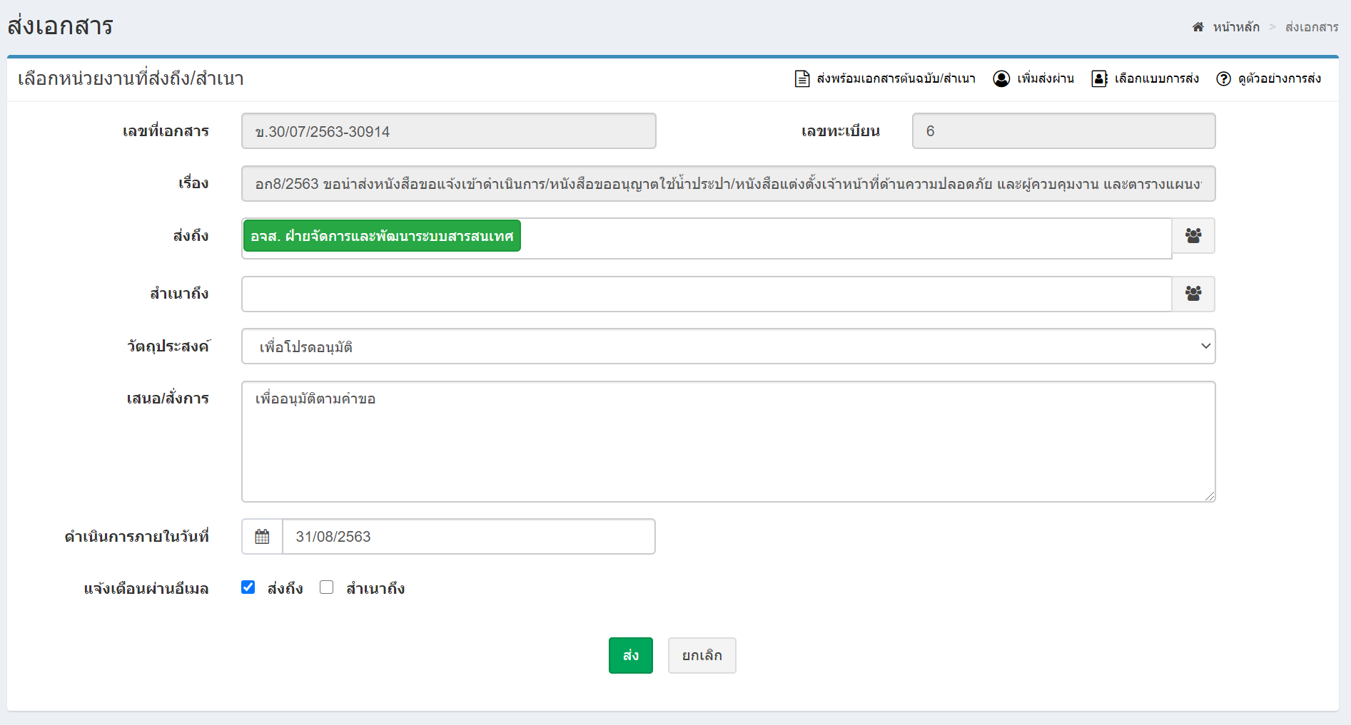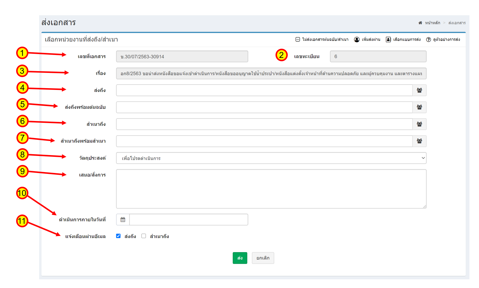 - เลขที่เอกสาร คือ เลขที่ของเอกสารที่กำลังจะส่ง