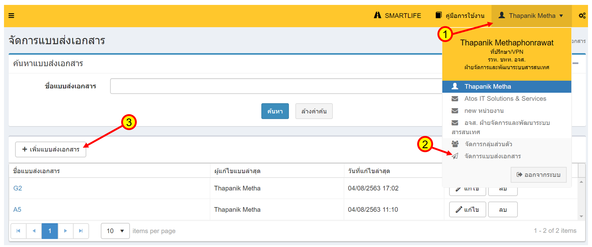 - เลือกที่ชื่อผู้เข้าใช้งานระบบ